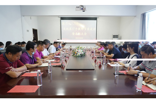 赓續百年初心,擔當育人使命。9月9日下午,在第37個教師節即将來臨之際,學校在知言樓三樓會議室召開教師節慶祝表彰座談會。校黨委書記彭德忠出席座談會并講話,校長蔔詩桢主持座談會。全體校領導,相關職能部門、各學院主要負責人,教師代表,學生代表歡聚一堂,共同慶祝老師們的節日。