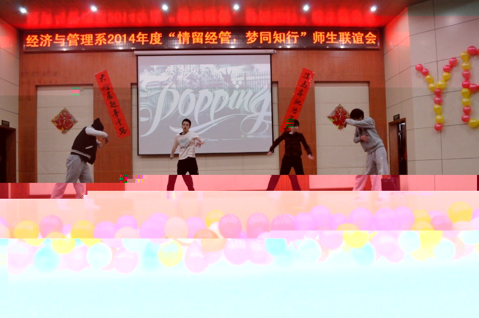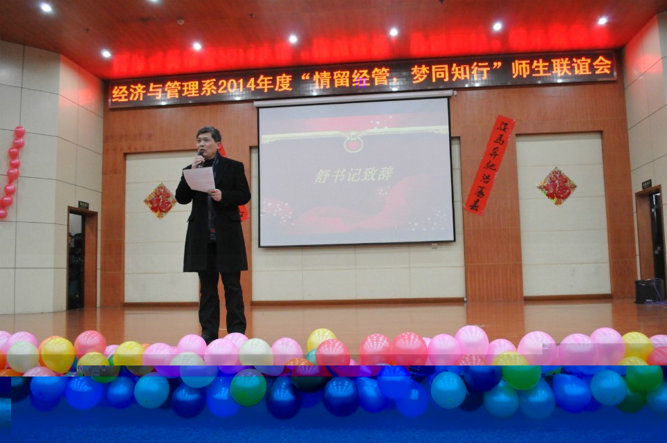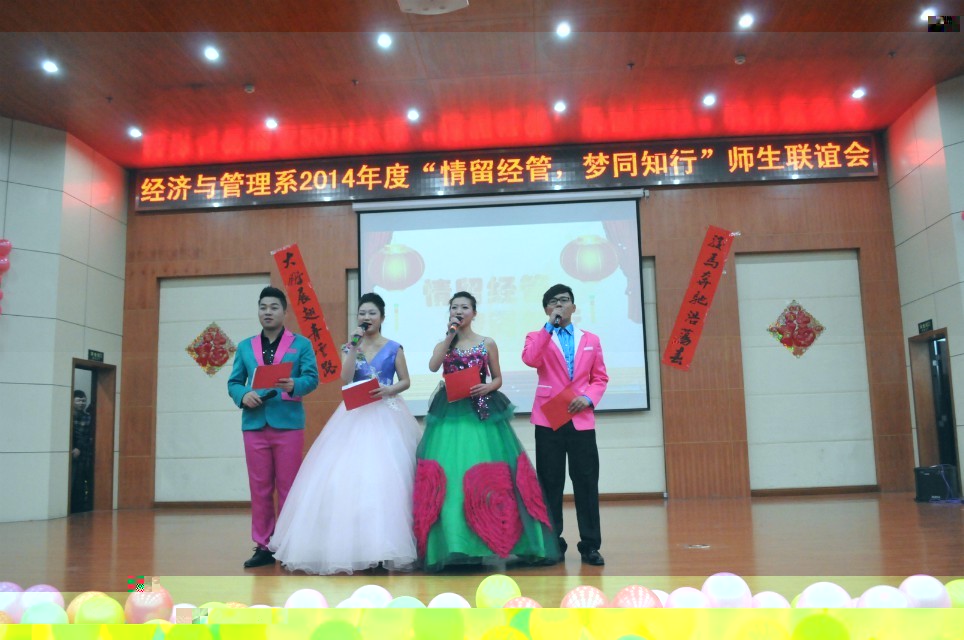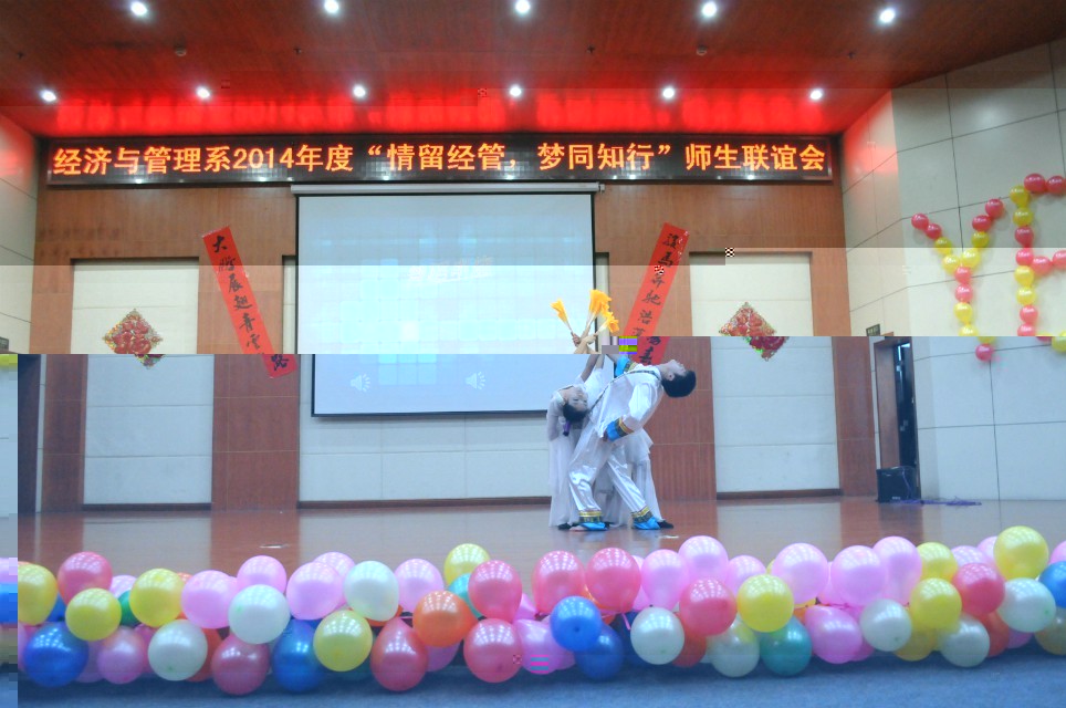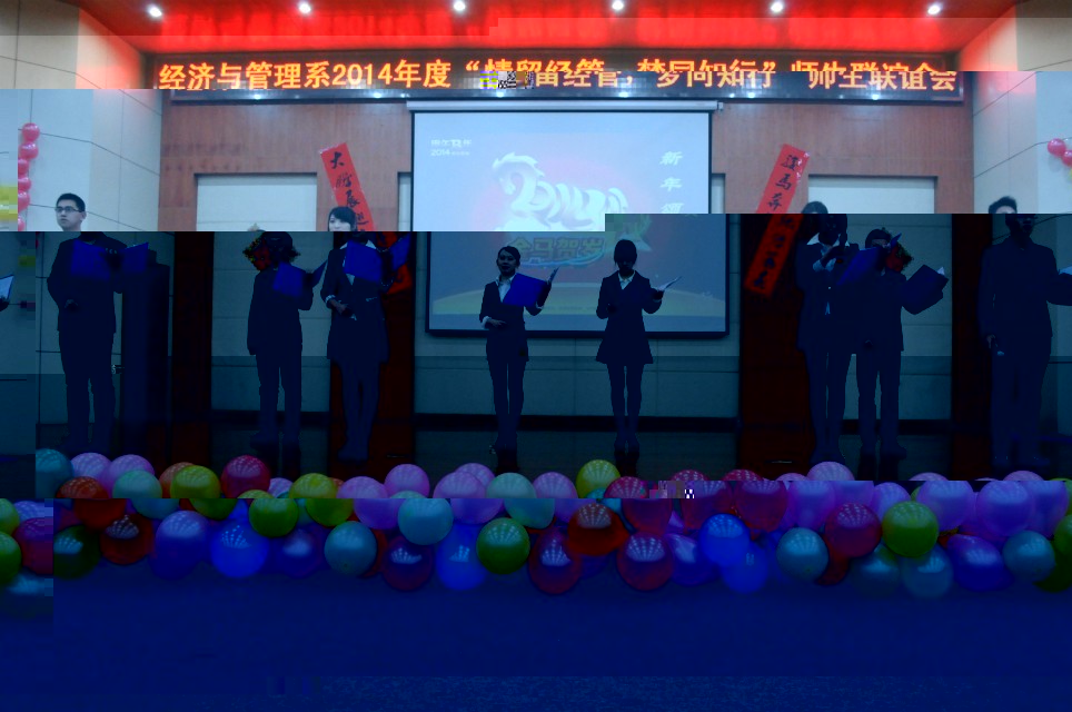 2013年12月26日晚,精心準備一個多月之久的元旦晚會終于拉開了帷幕!情留經管,一載寒窗苦,青蔥歲月。夢同知行,半程淩雲路,不悔流年。在2013最後的幾天,經管師生齊聚一堂,懷着對新的一年的期待,共同度過了一個樂趣橫生的夜晚。