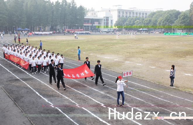 經管系的代表方陣,穿着白色T恤,手拿紅黃藍三色花環,他們步伐矯健,手拿“加油知行”的展闆,高喊“2013 經管争先”的口号,展現了我系學子奮勇争先的精神狀态。