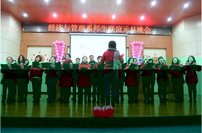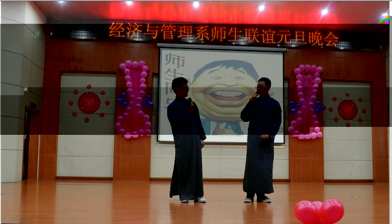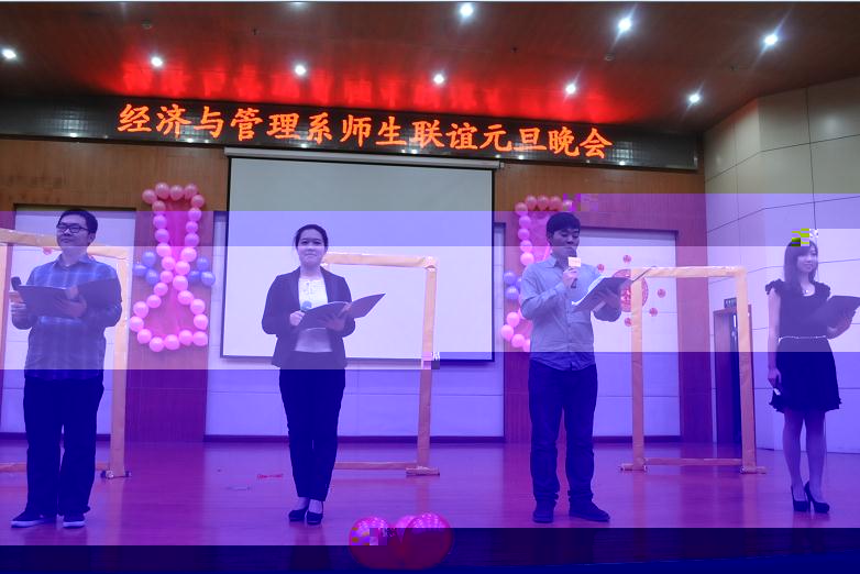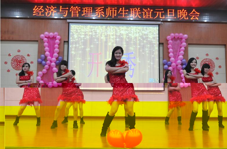 (本網訊) 2012年12月27日6:30分,經濟與管理系“師生聯誼元旦晚會”在行政樓201隆重拉開帷幕。經管系舒展書記、劉榮主任、國貿教研主任胡燕、學生會指導老師秦欣欣等等老師和400多名同學一同參加了該演出。