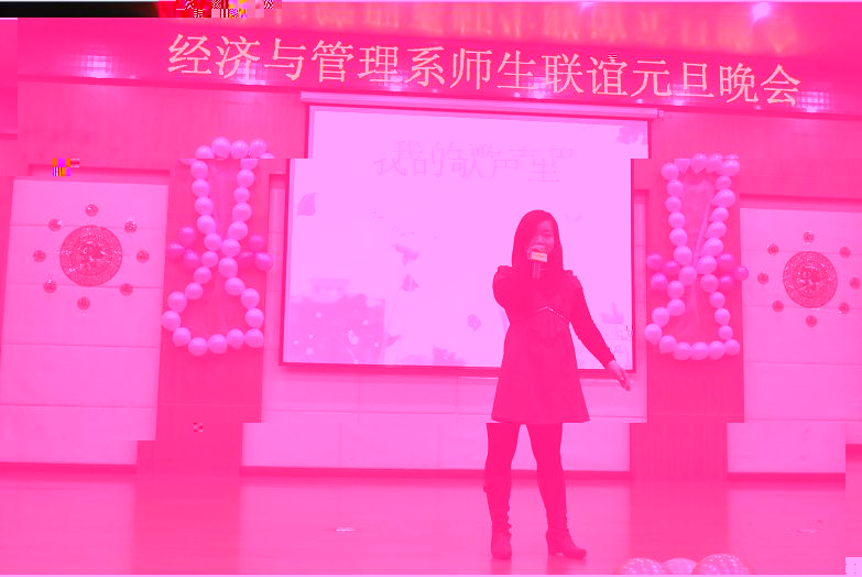 接下來就是劉勤老師為我們帶來的《我的歌聲裡》。“你存在我深深的腦海裡”讓在場觀衆陶醉其中。老師的歌聲悅耳動聽,展現了其不俗的唱功。《快樂地跳吧》婉約動人,舞美人更美,感謝輔導員老師們!經管系的老師們都是多才多藝,和大家一起共享元旦,感謝他們,我們真的很快樂。