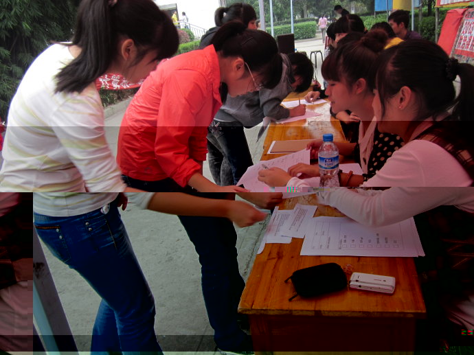 2011年10月12/13日。經管系分團委學生會在老食堂門口展開了為期兩天的納新活動。為了更好地服務于學生,為經管系分團委學生會注入新鮮血液。此次納新活動吸引了許多新生的咨詢與報名,相信11屆新生的加入,會給我們經管系分團委學生會帶來不一樣的亮點。期待下一步的競選結果吧。。。