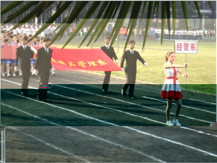 活動開始後,其中經管系的方陣組合,擺出“加油,知行”的強大号召,其出彩的設計、整齊的隊伍,組成一幅唯美的畫面,動人心魄!彩旗飄揚,舞蹈群飛,傳統京劇散發着陣陣清香,參加成員們盡情舞蹈,來表達對運動會的無限歡迎。彩虹傘搖轉出他們的激情,抒情曲表達出他們的祝福,正方陣顯示出他們的威嚴,一切是那麼美好!現代又帶有濃厚古典氣息的臉譜,别具風韻的印度舞,健美操隊勁爆的啦啦操,彩傘之下變幻莫測的圖案,都精彩絕倫,讓人流連忘返。所有人都期待着田徑及有關項目能綻放出新的色彩。