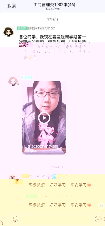之後,董逸老師對本次肺炎的事情做出重點強調,要求大家及時關注群消息,為保證同學們的自身安全,不要提前返校。切忌在網上随意發表不正當言論,要相信政府和國家,一切以官方消息為準。希望同學們注意身體,保護好自己。