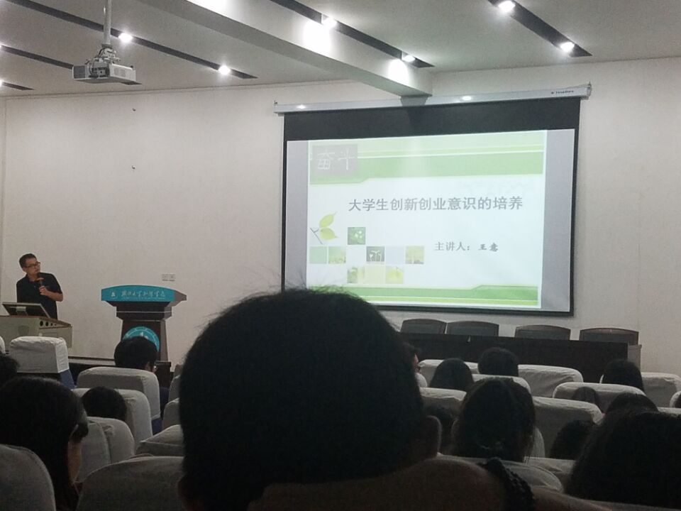 2017年6月12晚7點,在知遠樓106報告廳,“自主創業明星”王意為經管系學生做創新創業意識培養的講座。